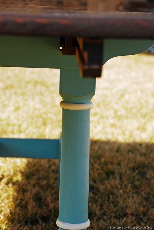 Love what you did with the table, and I REALLY love the color of the legs!! My husband and I redid a table too…you can see it at my blog SewSweetCottage. Seeing yours makes me want to do another!!