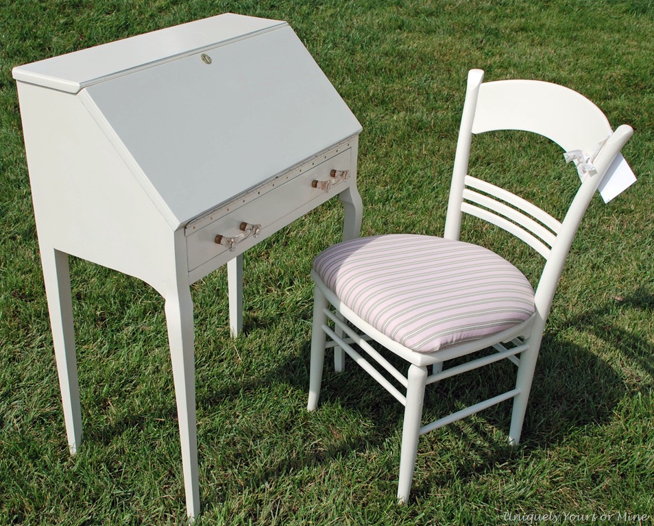 I don’t often make special trips to Goodwill… I just don’t seem to have the “luck” that some of you have and more often than not I leave empty handed… but if I’m near one I always check it out! So I was very happy that this time I spotted this super cute secretary & chair!
