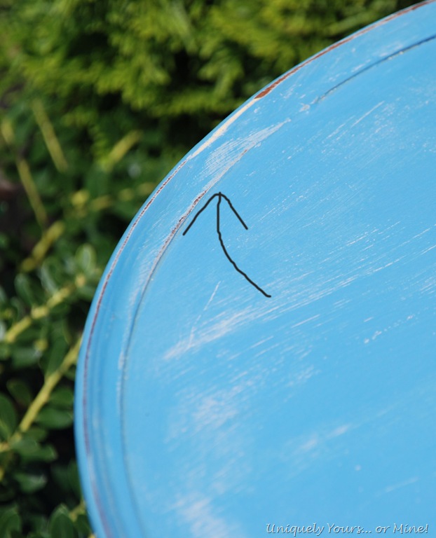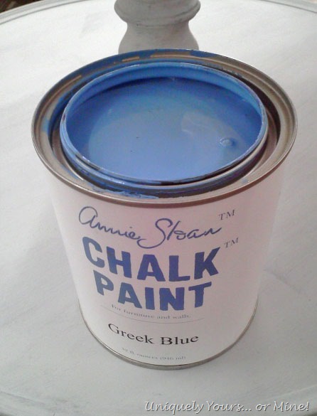 Here it is all finished up! I lightly distressed it and used a top coat of Minwax paste wax to protect the surface. I think the Greek Blue chalk paint was the right choice! The light-colored “spots” you see is dappled sunlight filtering through the tree… it was a bright sunny morning!