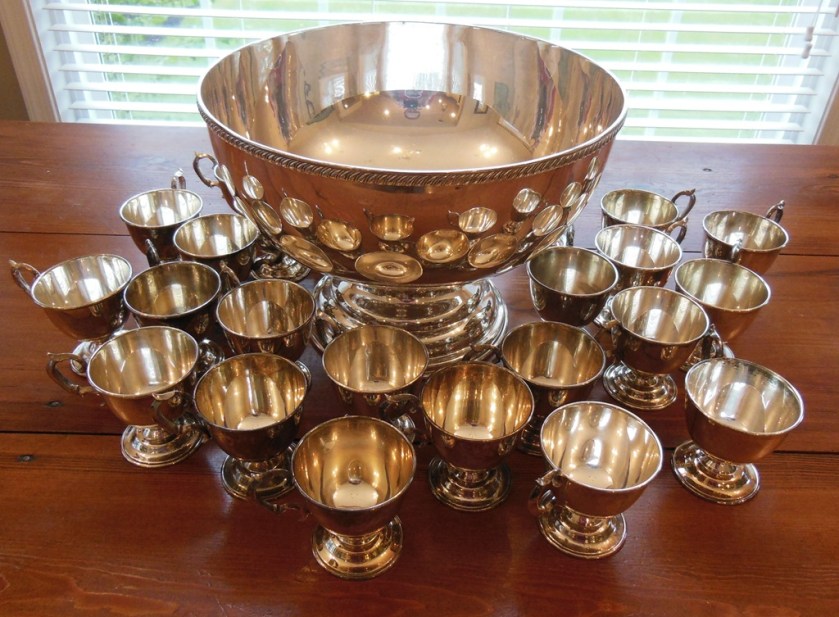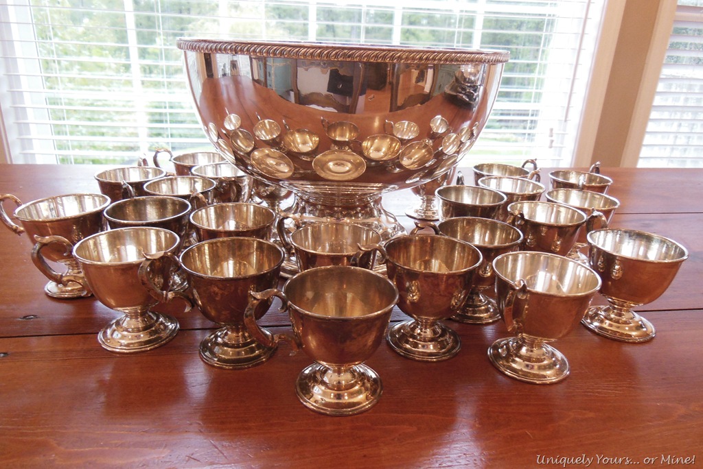 Umm… so excited! I got this silver plated punch bowl and 24 cups at auction!! They are just GORGEOUS!!!
