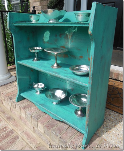 love the turq tone….I did a shelve a while back in Provence it sold within a month..love love the silver and yeap you need to keep some of this…that one tray is so decrotive……