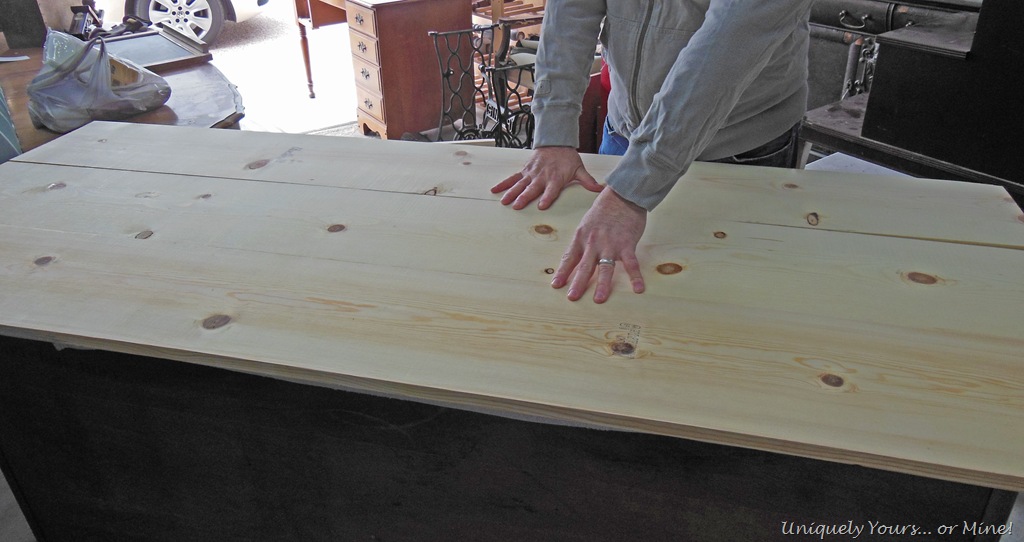 We used 3 6×10 pine planks and lined them up on a flat surface.