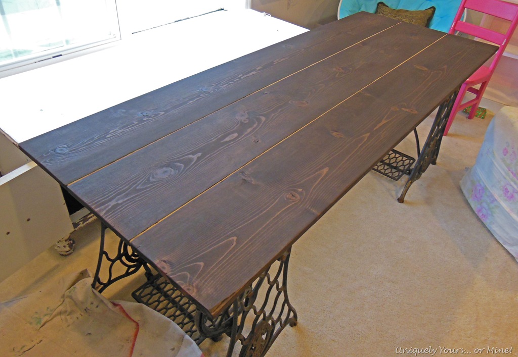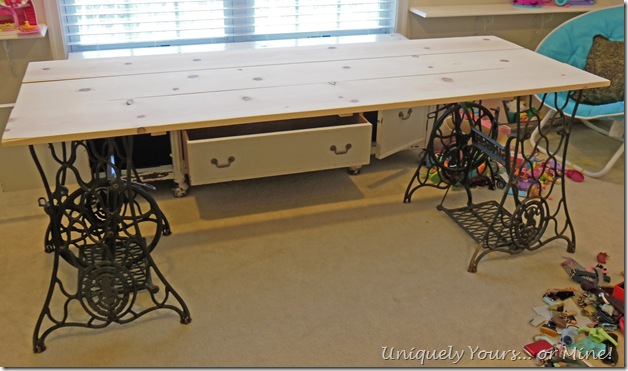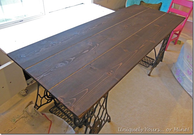 4. Wow, I love this!! What a great use for those old sewing machine stands. I’ve never seen this done with one on each end. Love what you did to the top too:-)