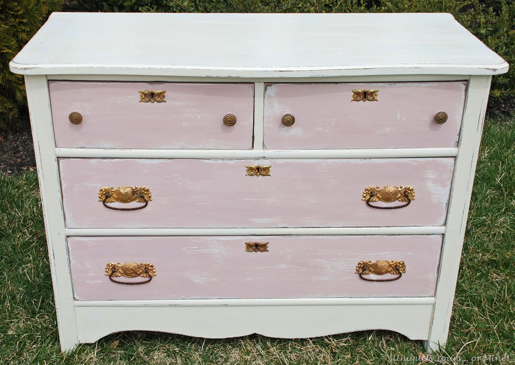 Ok, so this one doesn’t look too bad as is… but to me it just kind of lacks pizzazz. It also needed some drawer repairs but other than that was in very good shape and therefor a quick makeover!