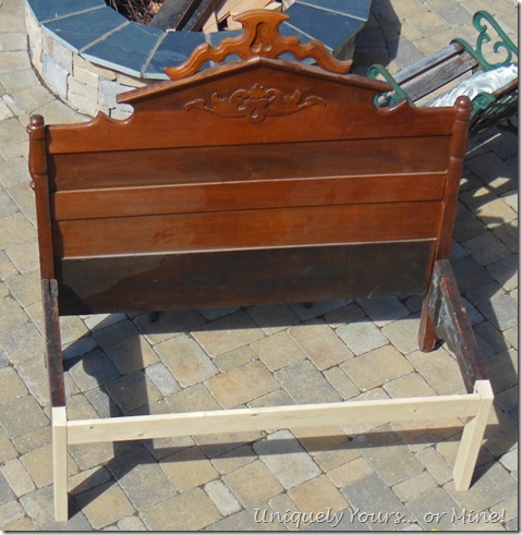 If you happen to have read my post a couple of weeks ago you’ll know my Hubby and I were making benches, well really it was just him but I cheered him on! A few weeks ago I had purchased an antique 3/4 walnut bed and decided to convert the bed into two benches. We were able to make two benches instead of one because we used the original wood side rails as the sides of the bench instead of the footboard, it worked like a charm!