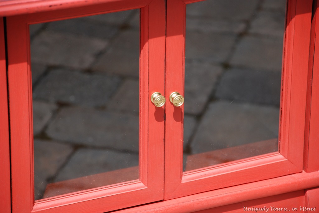 I very lightly distressed them and sealed them with Annie Sloan clear wax. I removed the knobs and sprayed them with Krylon’s Gold spray.