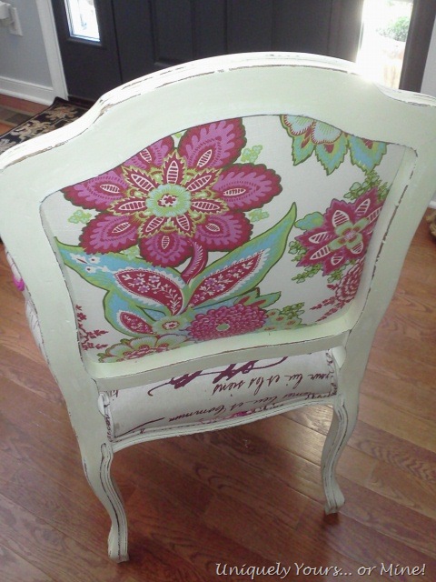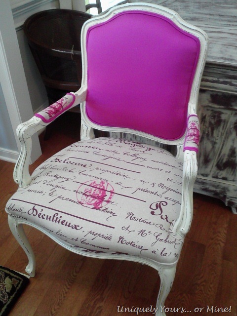 I absolutely love French chairs and script, and you combined the two beautifully. I love older furniture updated for new uses and the blue chest is incredible – honestly it looked old and worn out and now it looks fresh, young and hip. You do amazing work.