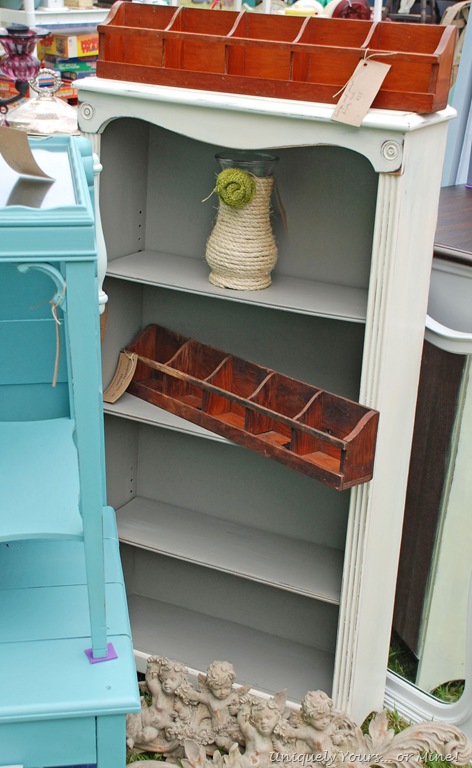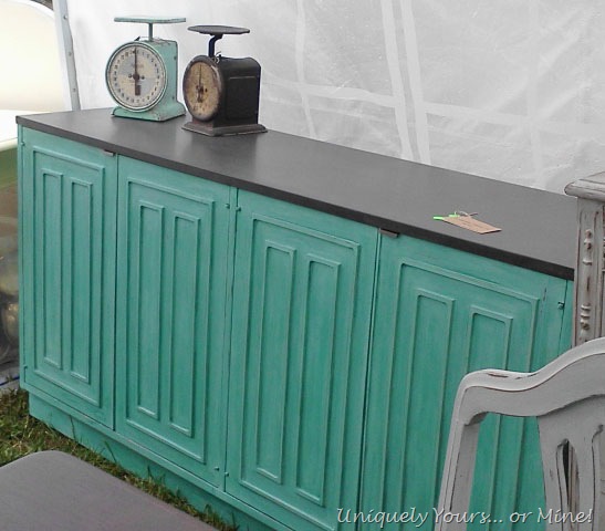 We painted it up in Dustin Gulf Green CeCe Caldwell paint. No picture of the inside but I painted the drawer fronts Old White and added label holders to them… they were very cute! The lady who bought this was jumping up and down with her mom when they spotted it, I’m guessing it was perfect for her?!