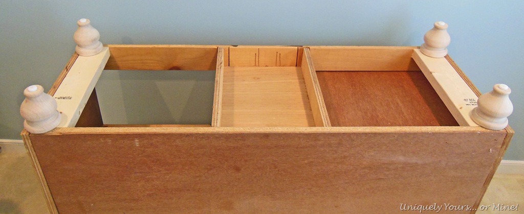 12. Hi, I love your project and am so glad you posted it. I just brought home a 1970’s dresser that I plan to transform into bathroom storage. I had planned to attach bun feet, but when I got it home I realized it has a “hollow bottom” like yours. How did you attach the 2x4s without making it too obvious from the outside of the piece? Thanks!