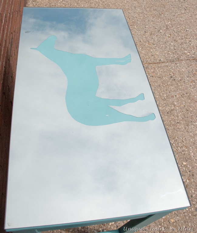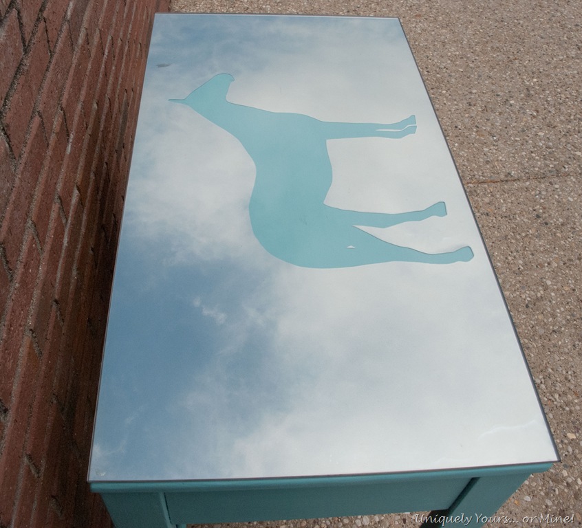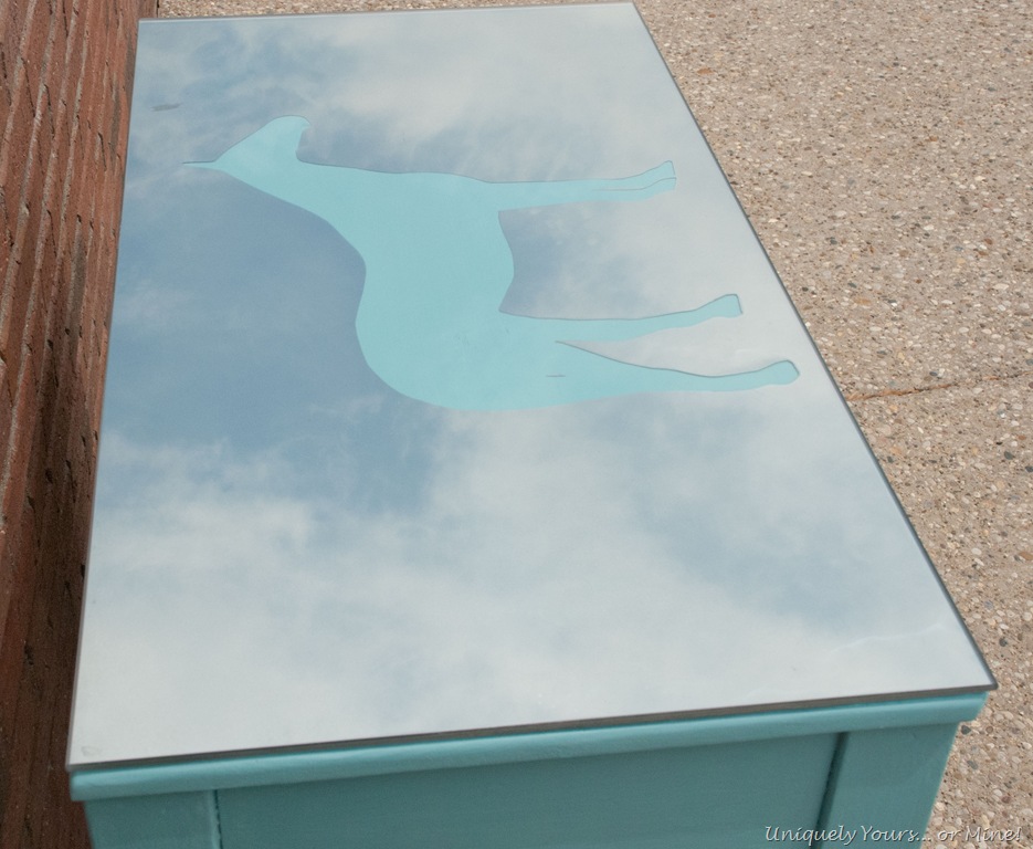 I cutout the horse from the contact paper and I adhered it to the back of the glass and then sprayed the glass with 3 light coats of Krylon’s Looking Glass spray paint, man do I love this stuff!