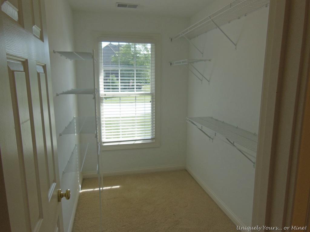If you remember this is what we started with, builder basic closet, original paint from 12 years ago, wire shelving… check out more detailed before information in my post here.