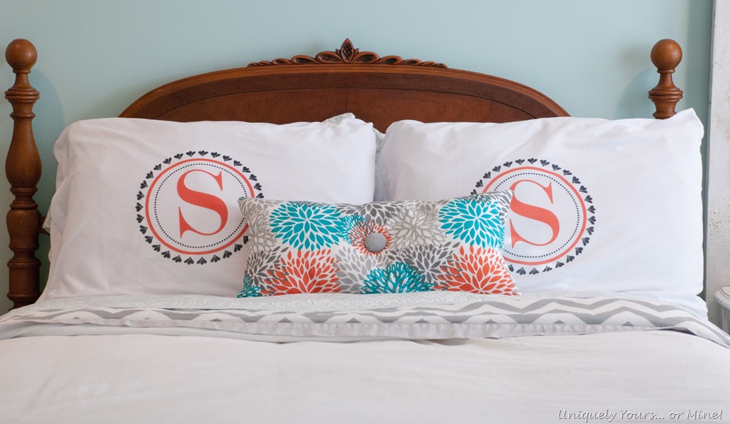 I bought the the “S” pillows from Etsy and made the mum’s pillow myself. The bedding is from Target and Bed, Bath and Beyond and the duvet cover is reversible. I would have had it showing the grey and white chevron side, but Brie is NOT a fan of the grey so I have to sneak it in where I can… I seriously don’t know what is wrong with that child Winking smile