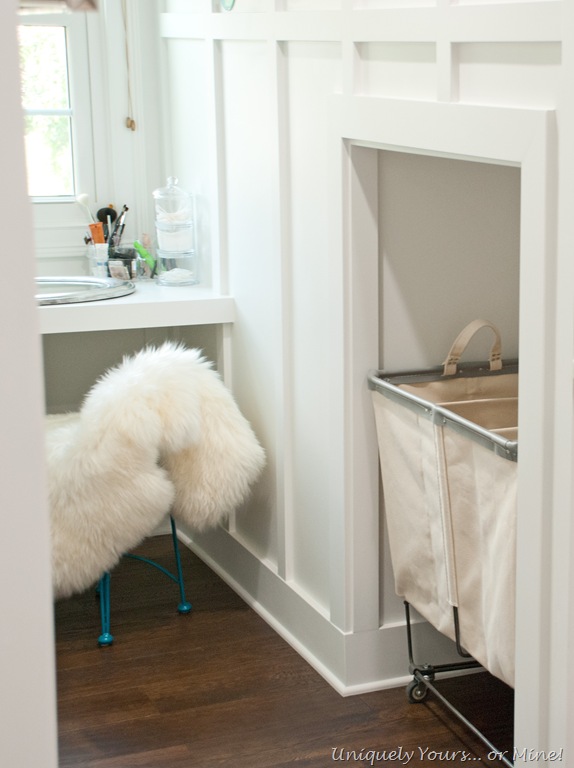 We knew that there was a ton of wasted space that we wanted to gain access to. So in the bathroom we decided to use up a portion of the space to create a nook for the laundry cart, it’s not a big deal but it’s a good use for space that would otherwise be unused.