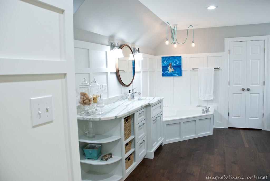 To see other parts of the renovation: Master Bathroom Remodel Part 1, Master Bathroom Renovation Part 2, Master Bathroom Renovation Part 3, Master Bathroom Renovation Part 4, Master Bathroom Renovation Part 5Master Bath Flooring Progress, A Tale of Two Dormer Windows, Building Knee Wall Cubbies, The Evolution of a Walk In shower