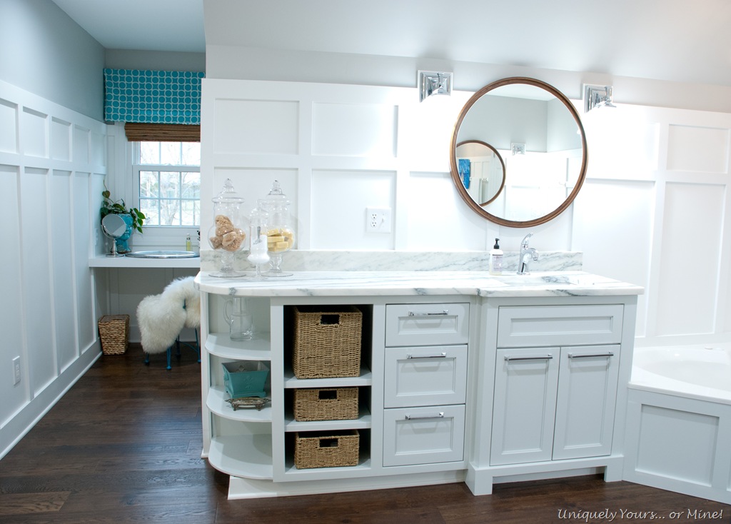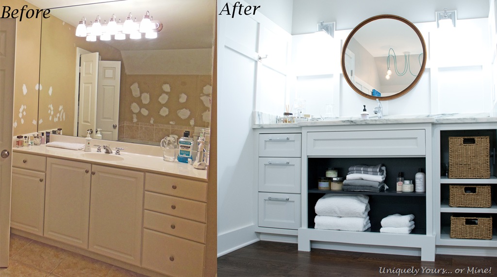 Here’s a Before and After comparison of my vanity area for you… the original builders really loved their mirrors didn’t they?