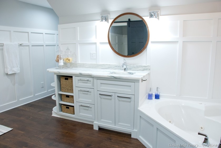 1. Hey Ashley, thanks so much! We used primed MDF, they were primed prior to installing, caulked and painted with high quality Benjamin Moore paint. I wouldn’t suggest this for tubs used by kids, but for me it worked perfectly and was an easy update to complete.