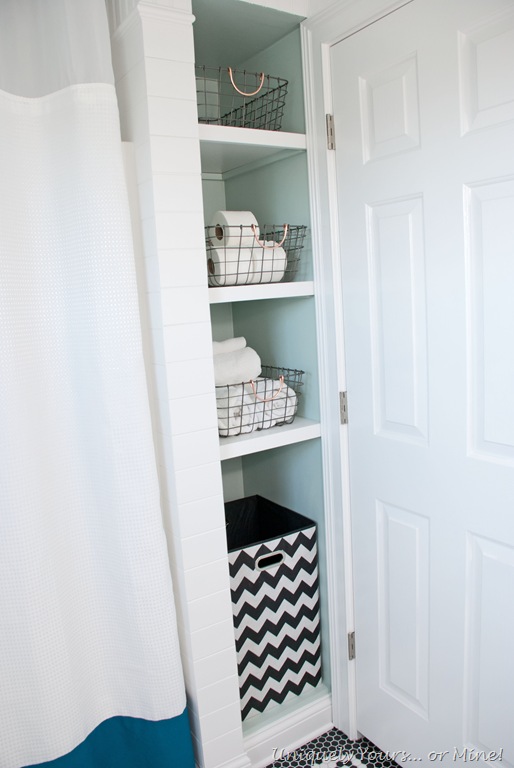 DIY linen bathroom cubby