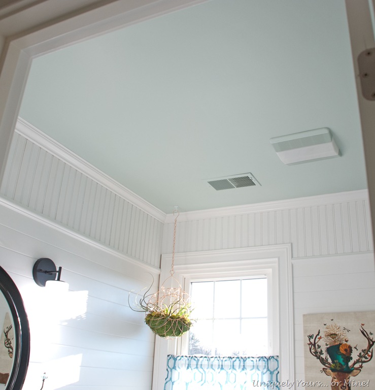 Blue painted bathroom ceiling