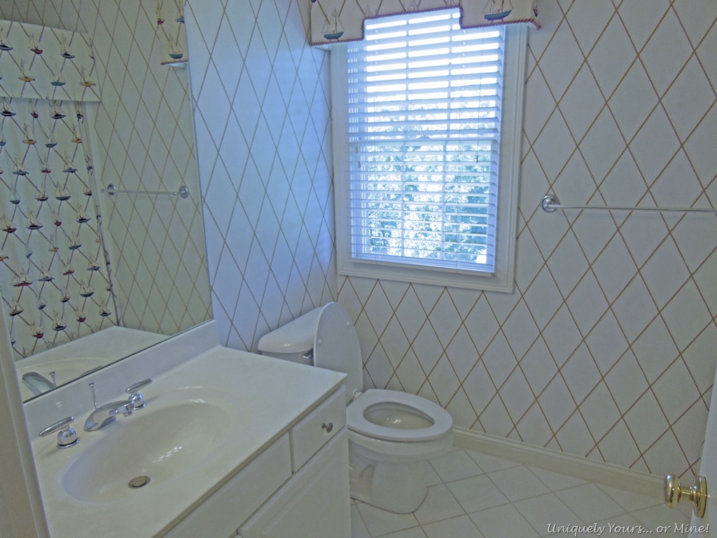 A little throw back to when we purchased this house and I know this may not look too bad to some of you but those are boats on the curtains and the wall paper pattern is gold rope, not our style at all.