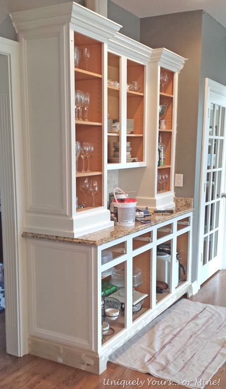 Adding feet and decorative molding to the butler’s pantry cabinets was a pretty straightforward and easy project. We started off with these cabinets.