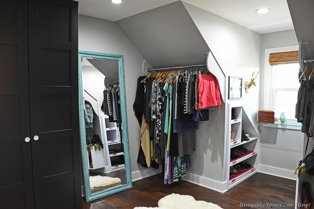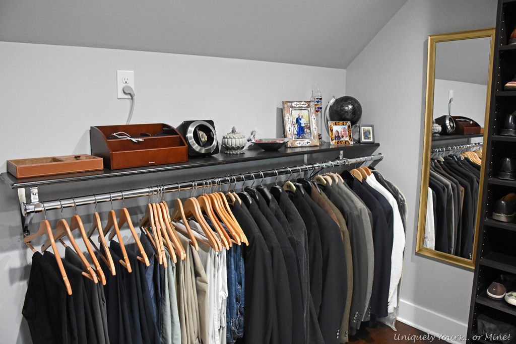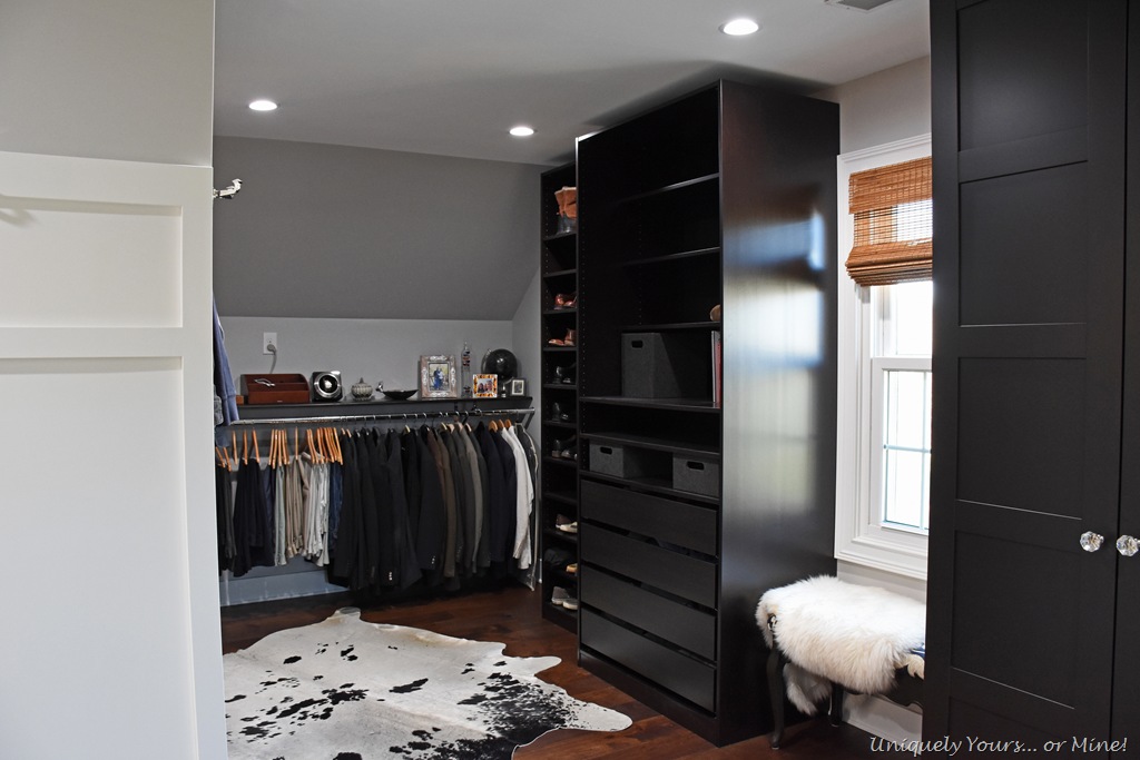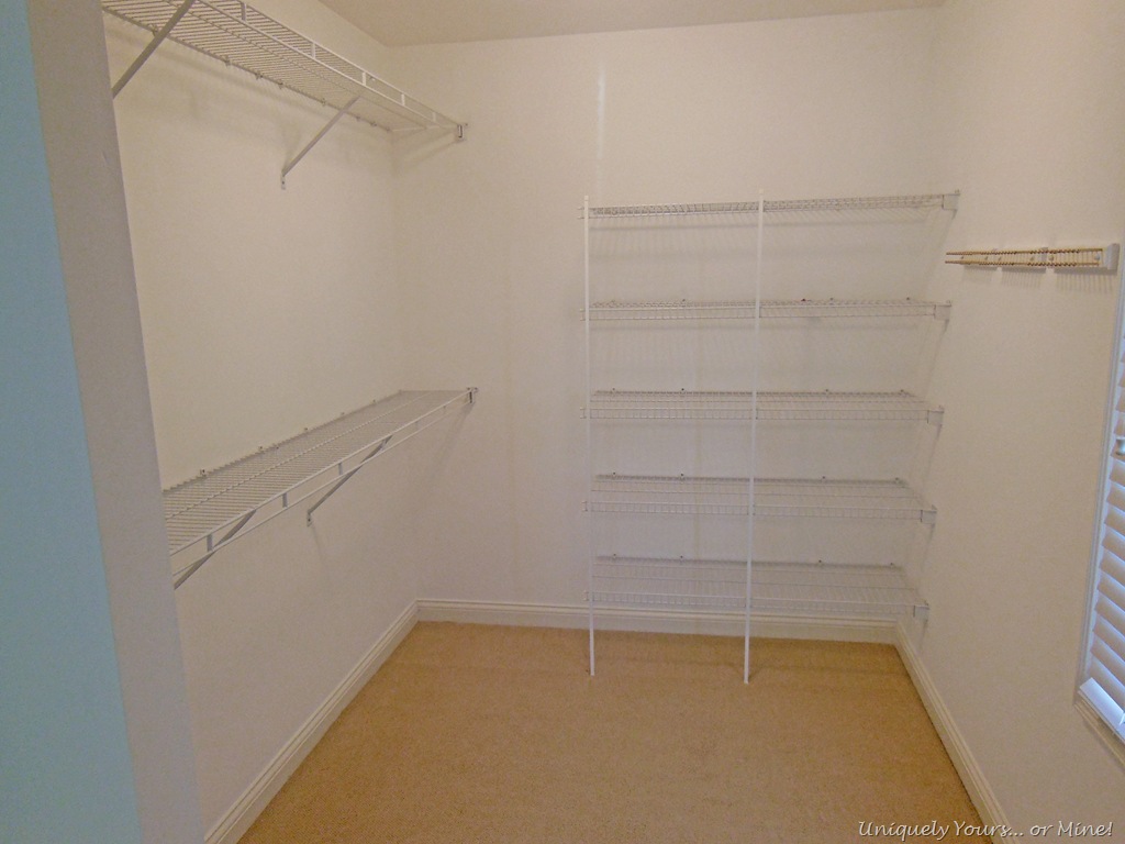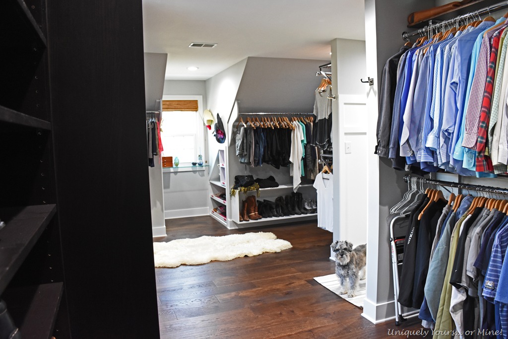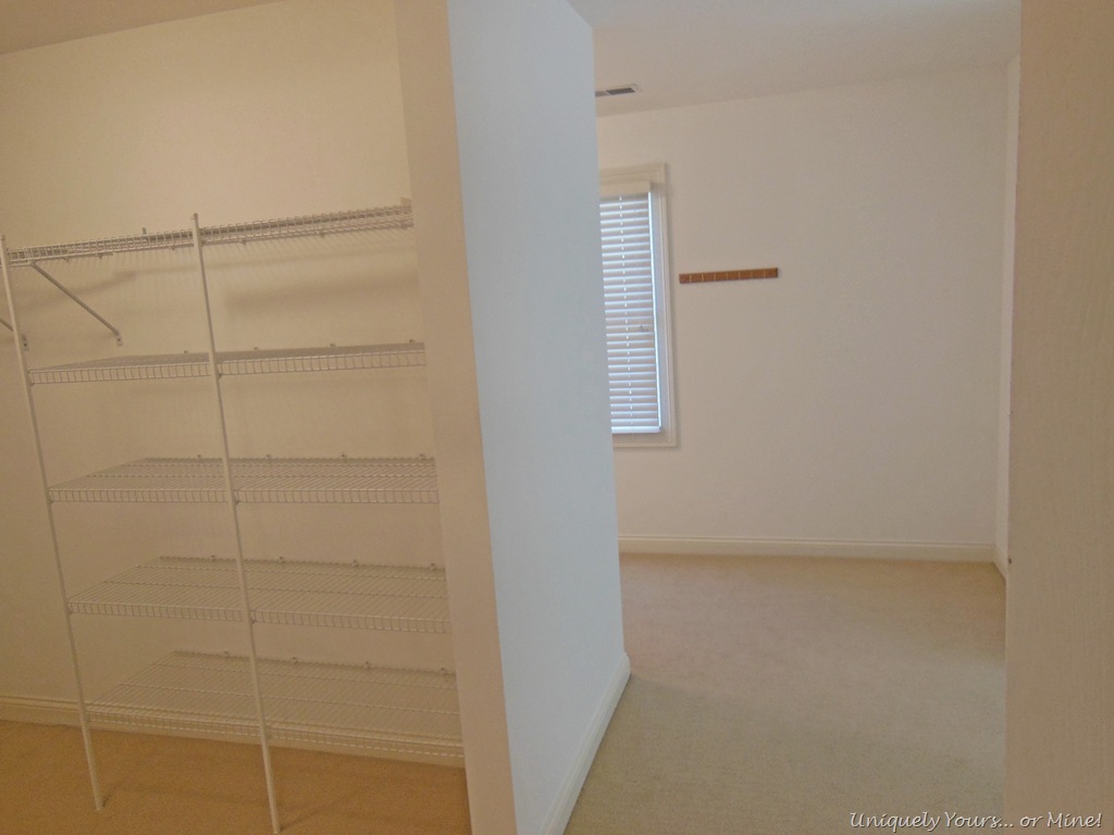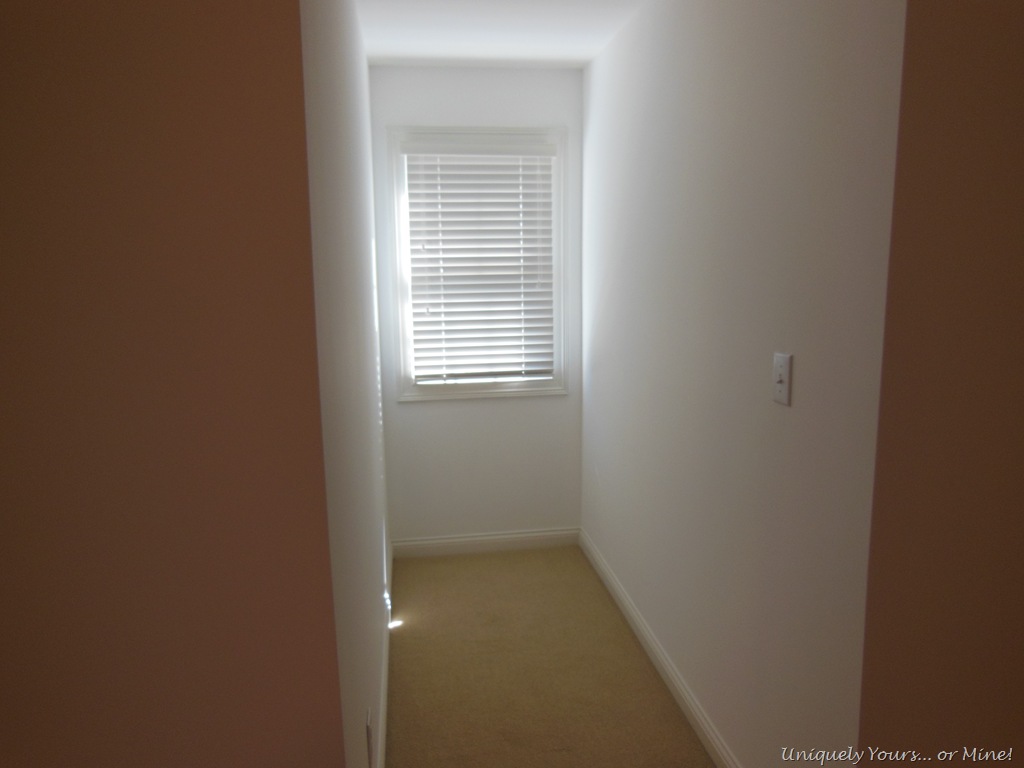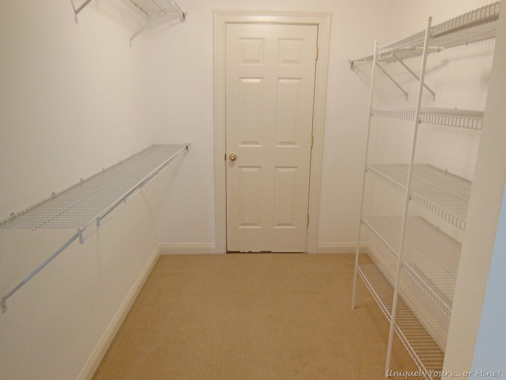 This was the view into the closet, there was a door off of the master bathroom which is why I consider it a closet before but a “dressing room” now. My side is the first left, hubby’s side is behind mine with the most natural light (he has a tad issue with determining whether clothing is black or blue