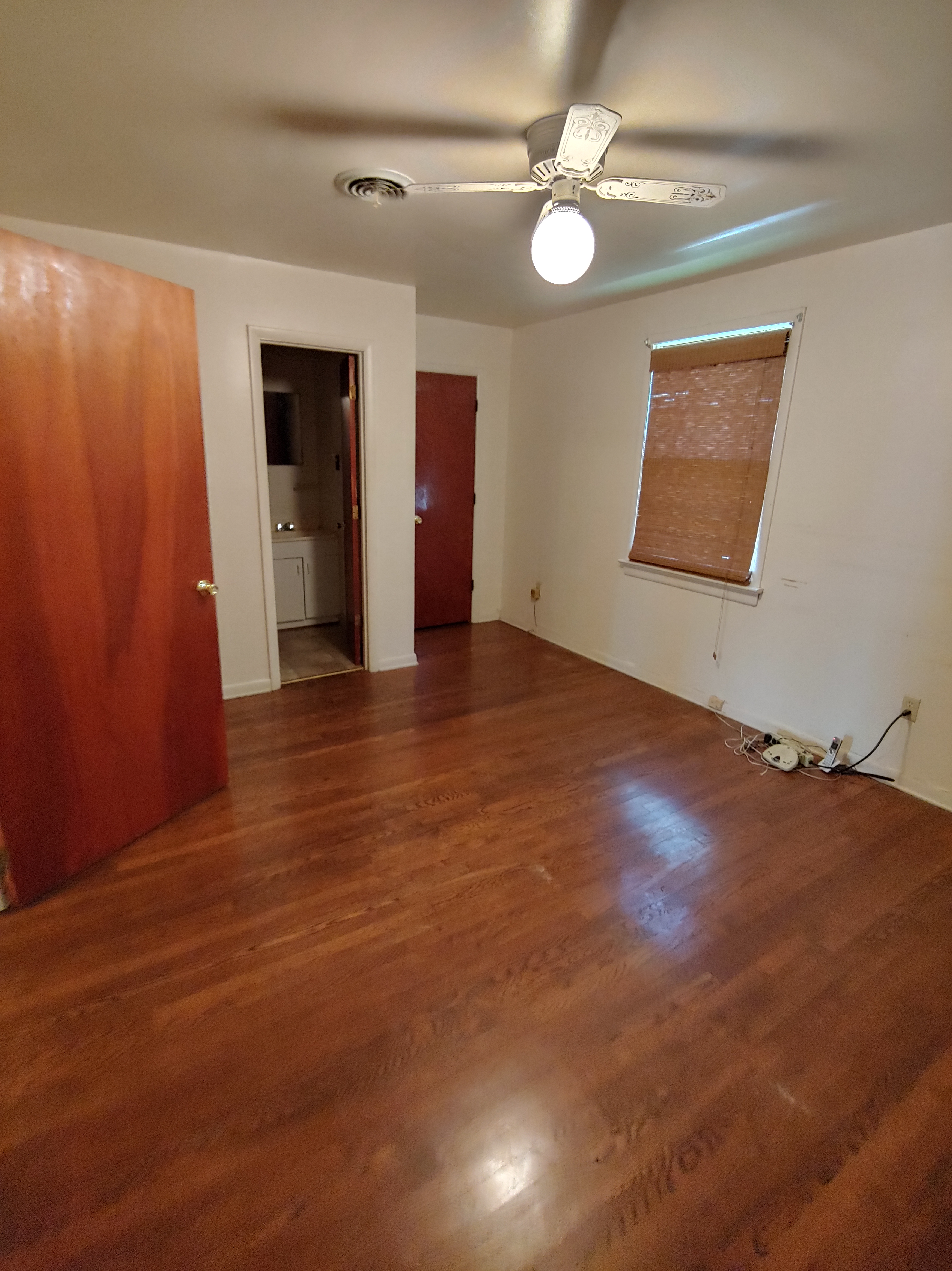 This is the Master Bedroom, it is an addition from MAYBE the 1990’s. It has real hardwood flooring, a small bathroom and closet in it. This room was probably in the best shape, it needed some repair to the drywall tape in some areas and a new coat of paint, but other than that was ready to go!