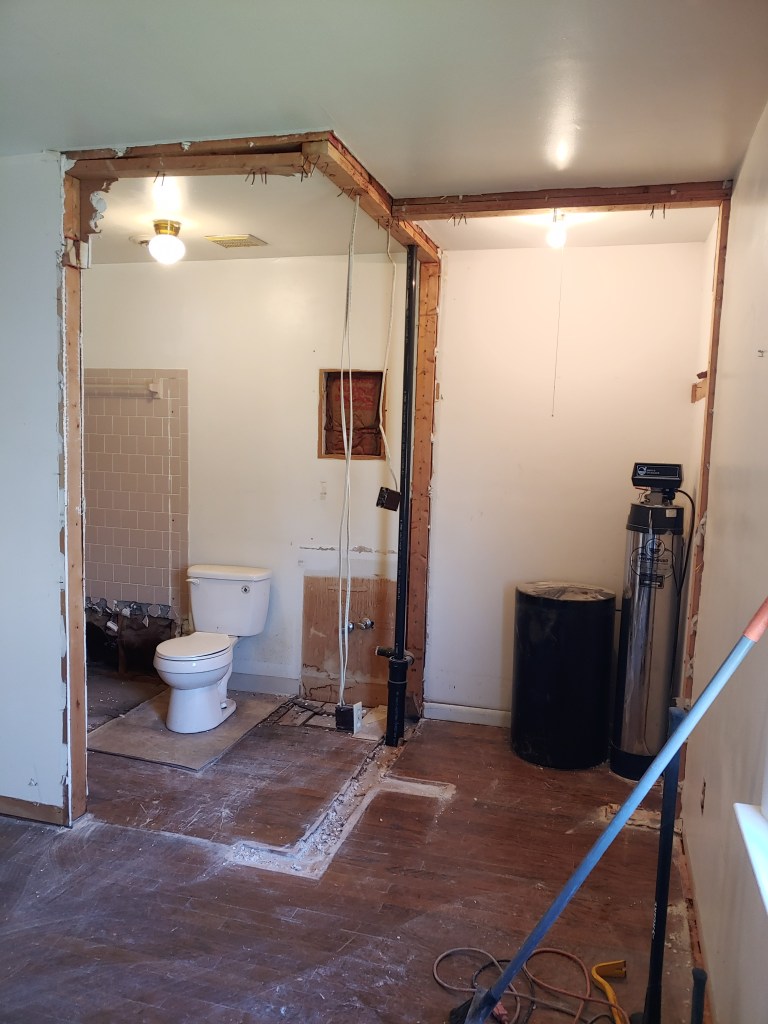 At this point the plumbers had already started to plumb the bathroom in. We ended up replacing all of the plumbing in the house, not only due to moving fixtures but some of the piping was Quest piping which was not good. There was very little copper left in the house for some reason…