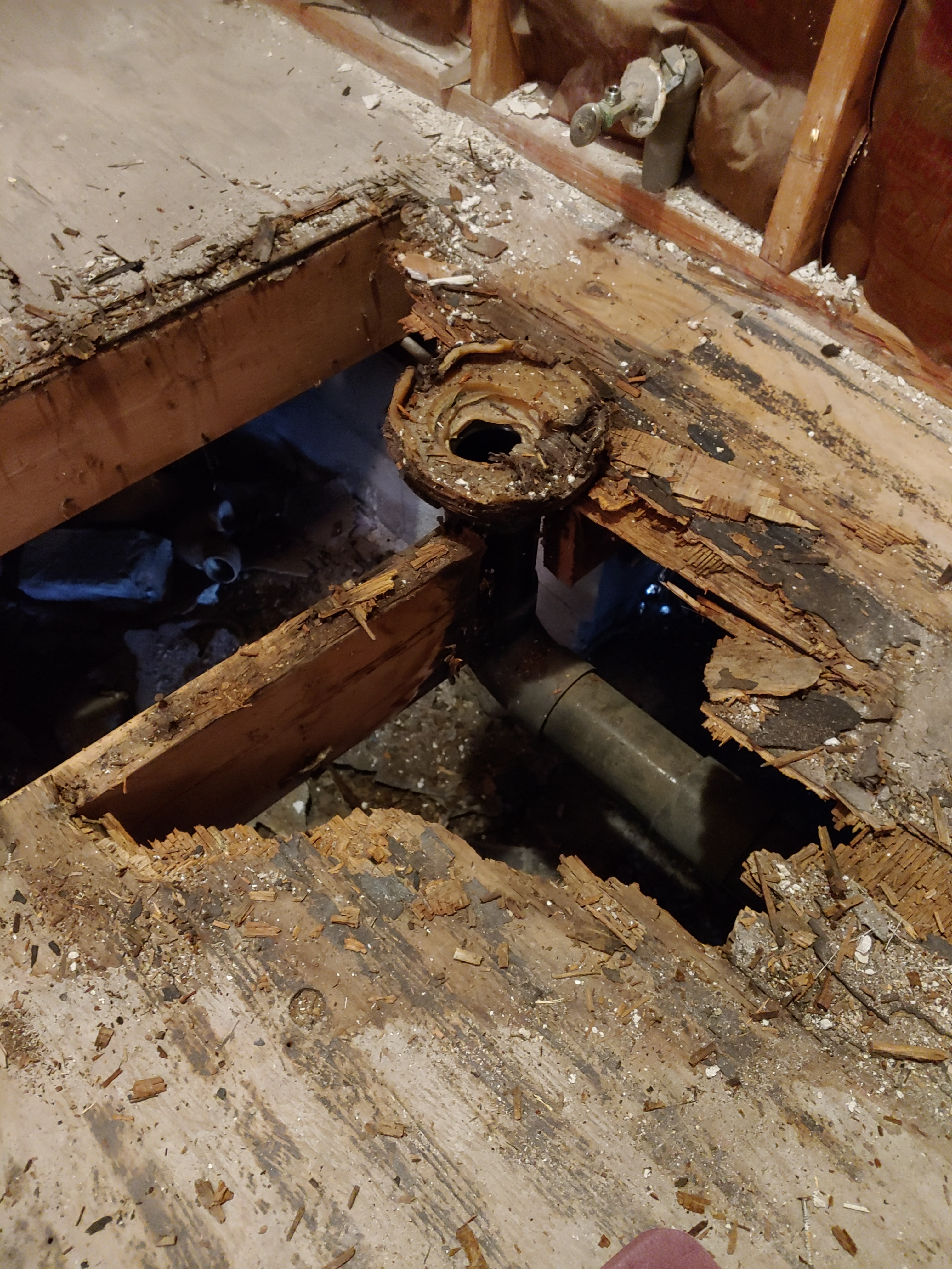 Now I am NOT going to say plumbers don’t care, but I am telling you this is the 2nd home we have owned were we have found that the plumber has cut a floor joist to install the waste pipe. This is just lazy and was the main reason for all of the water damage in this area!