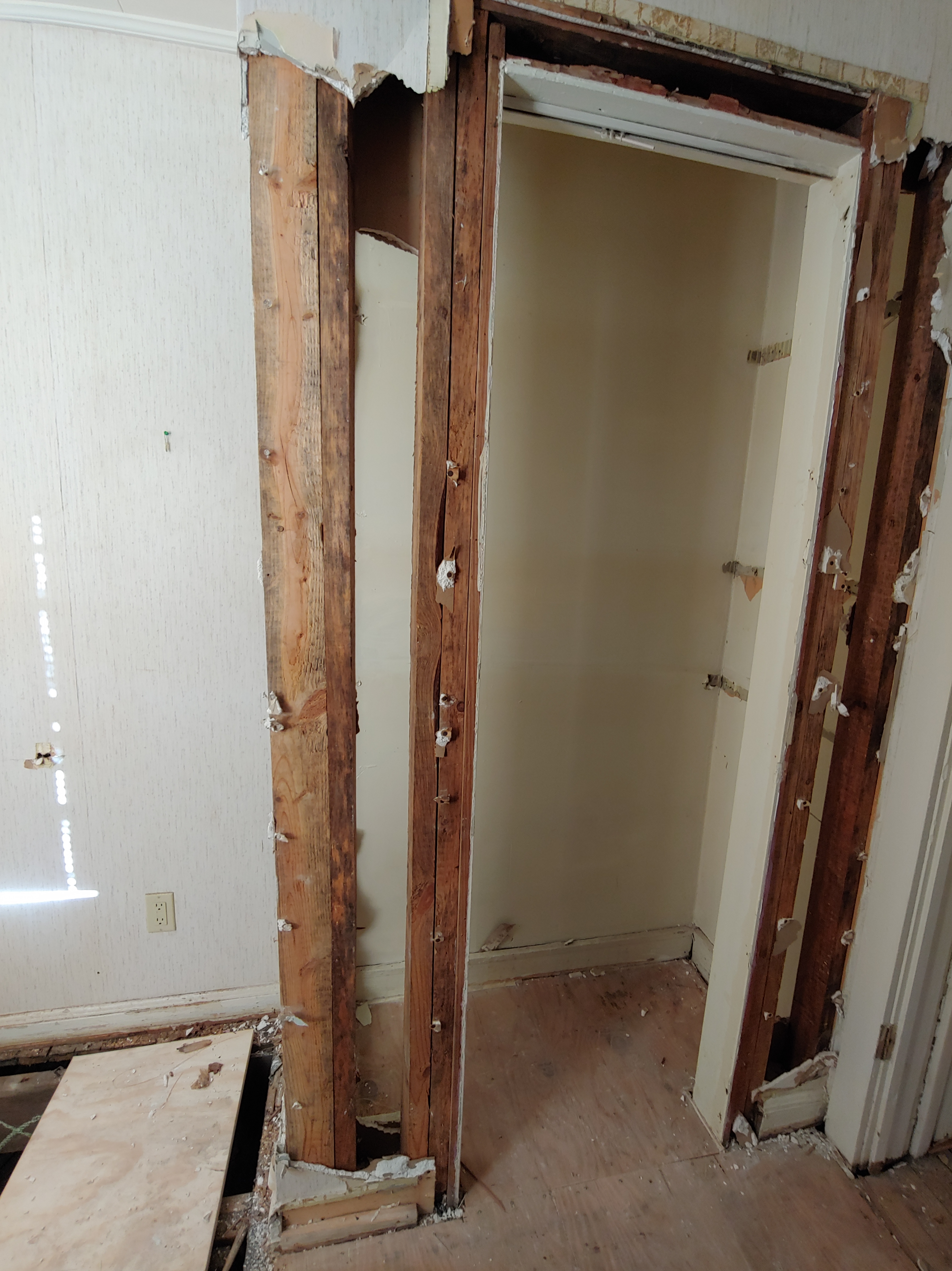 As part of the layout changes we are removing the small closet in order to use that space for the bathroom.