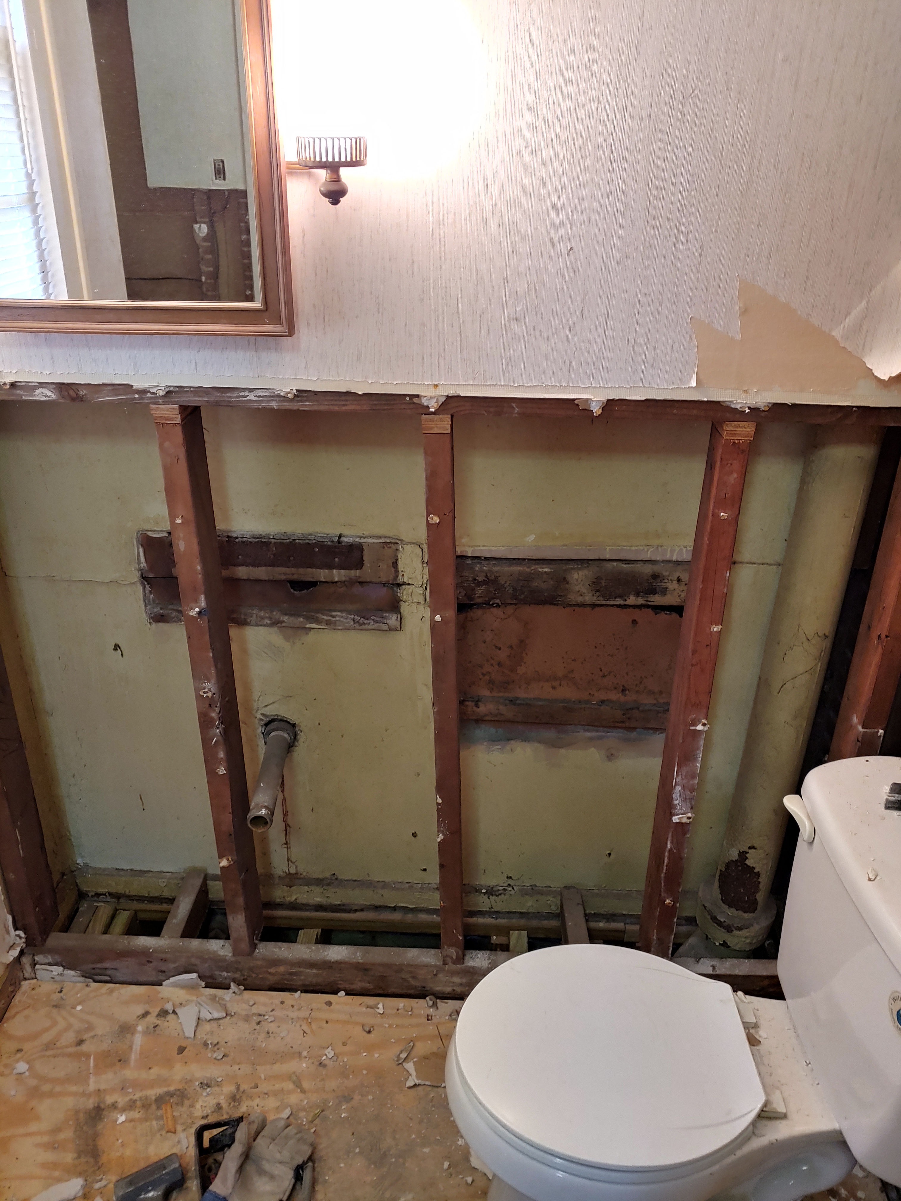At this point the plumbers had already started to plumb the bathroom in. We ended up replacing all of the plumbing in the house, not only due to moving fixtures but some of the piping was Quest piping which was not good. There was very little copper left in the house for some reason…