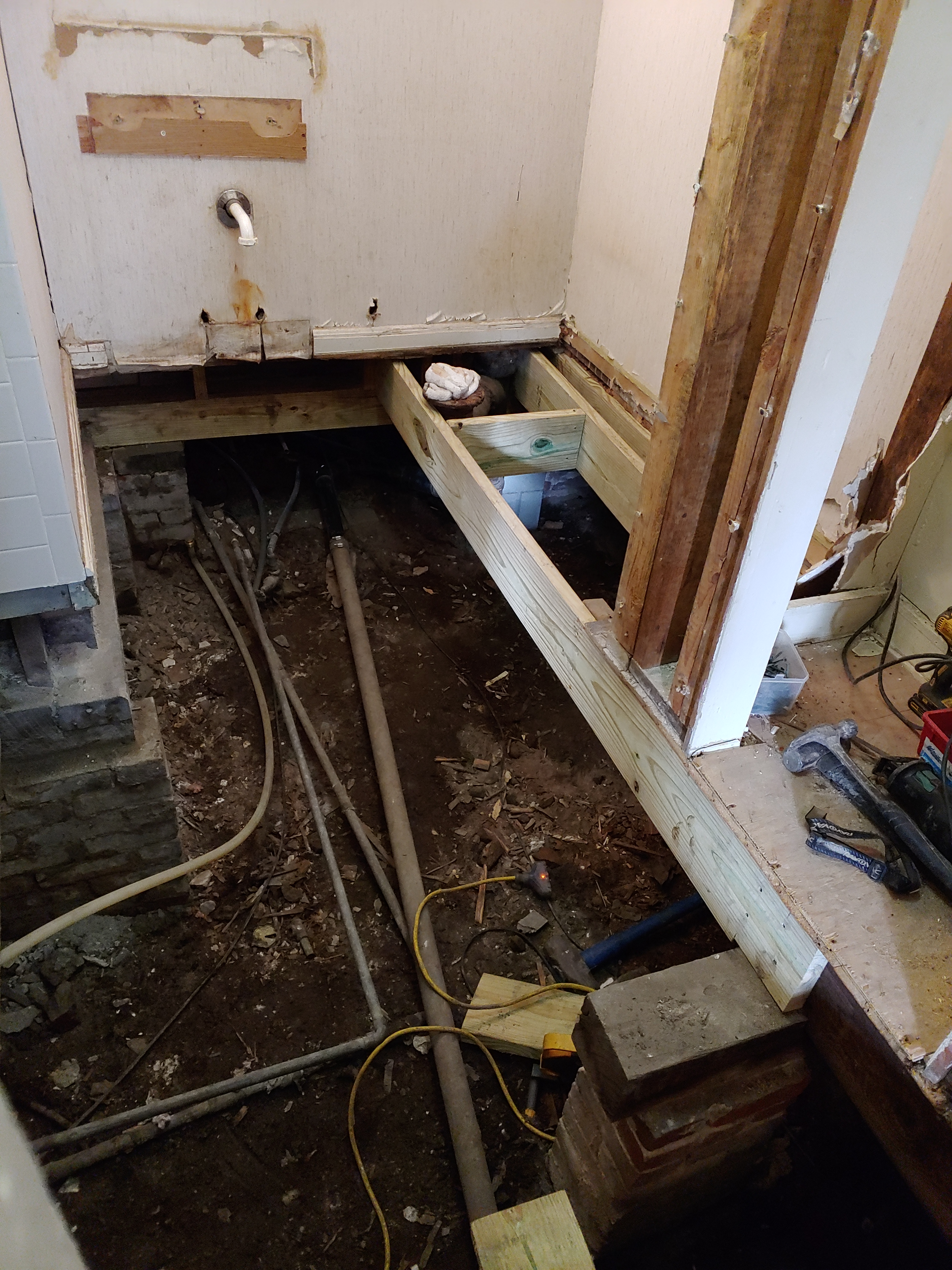 You could see where over the years they tried to shore up the flooring, but without fixing the problem (leaking pipes) the solution was just a temporary bandage.