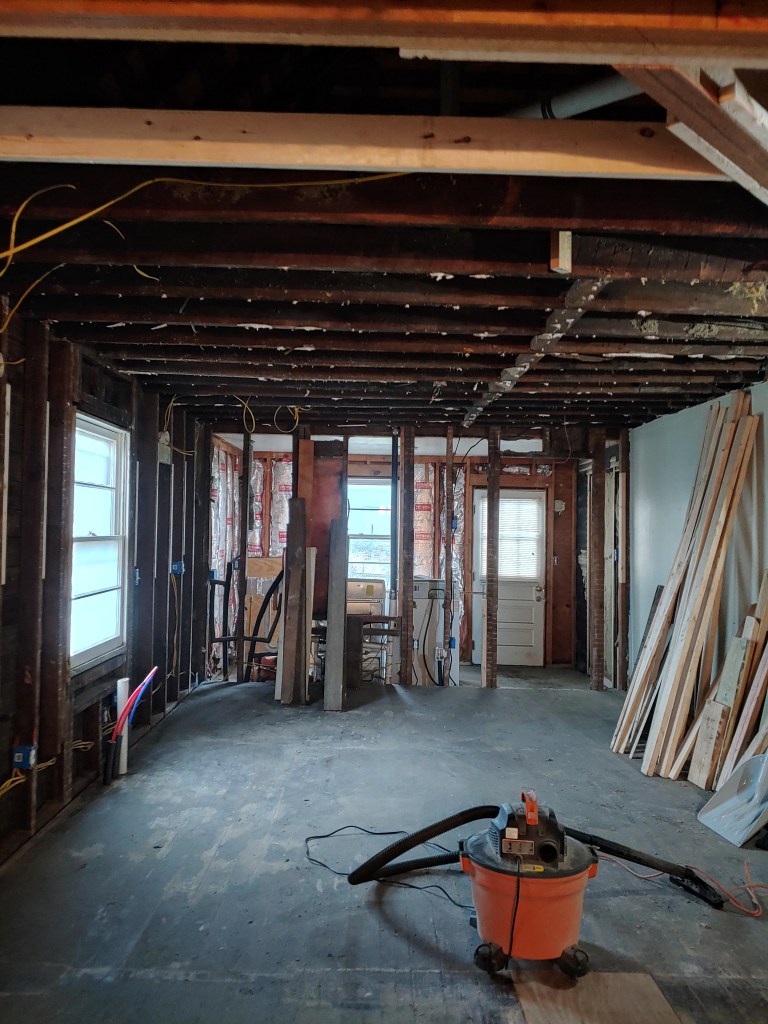 One wall of sheetrock I chose to remove in order to expose the original wood siding, I was very happy to showcase this piece of history in this newer addition to the home. This room will be my daughters and she didn’t quite see the vision of saving this old wall, but I know she will when it’s finished!