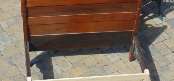 What happens when you buy an awesome antique walnut bed frame and then realize that it won’t fit a regular sized mattress (oops) ? Headboard